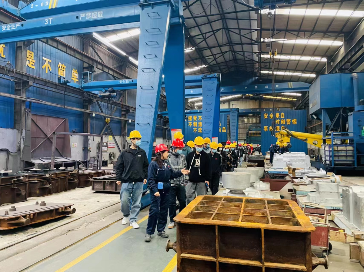 首先(xiān),公司生產總監閆濤向學生(shēng)們介紹了嫩草影院鑄業的企(qǐ)業概況、鑄造業在gao duan製造領域中的重要(yào)性及參觀an quan注意(yì)事項等,隨(suí)後學生(shēng)們有序進入車間,參觀了造型、熔(róng)煉、澆鑄、機器人清理打磨等生產設備及產品展廳,對整個鑄造生產流程有了直觀的感受。參觀過程(chéng)中,車(chē)間技術人員認真對鑄造生產工藝(yì)及設備進行了分析和(hé)講(jiǎng)解,並耐心解答了學生提出的(de)問題,讓大家對鑄造工藝流程有了更深的認識。